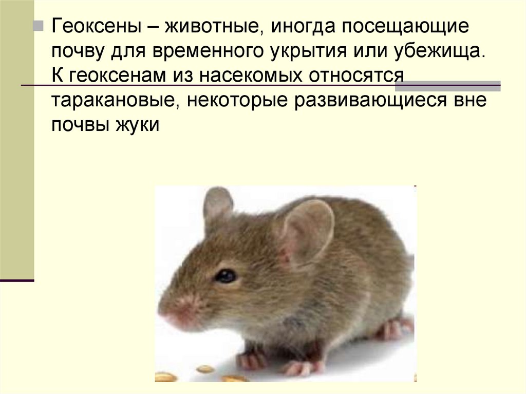 Геоксены – животные, иногда посещающиепочву для временного укрытия или убежища.