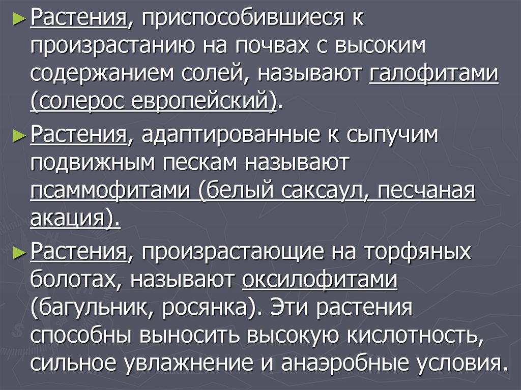 ► Растения, приспособившиеся кпроизрастанию на почвах с высоким