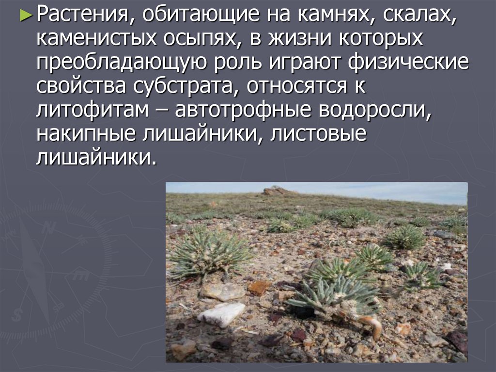 ► Растения, обитающие на камнях, скалах,каменистых осыпях, в жизни которых