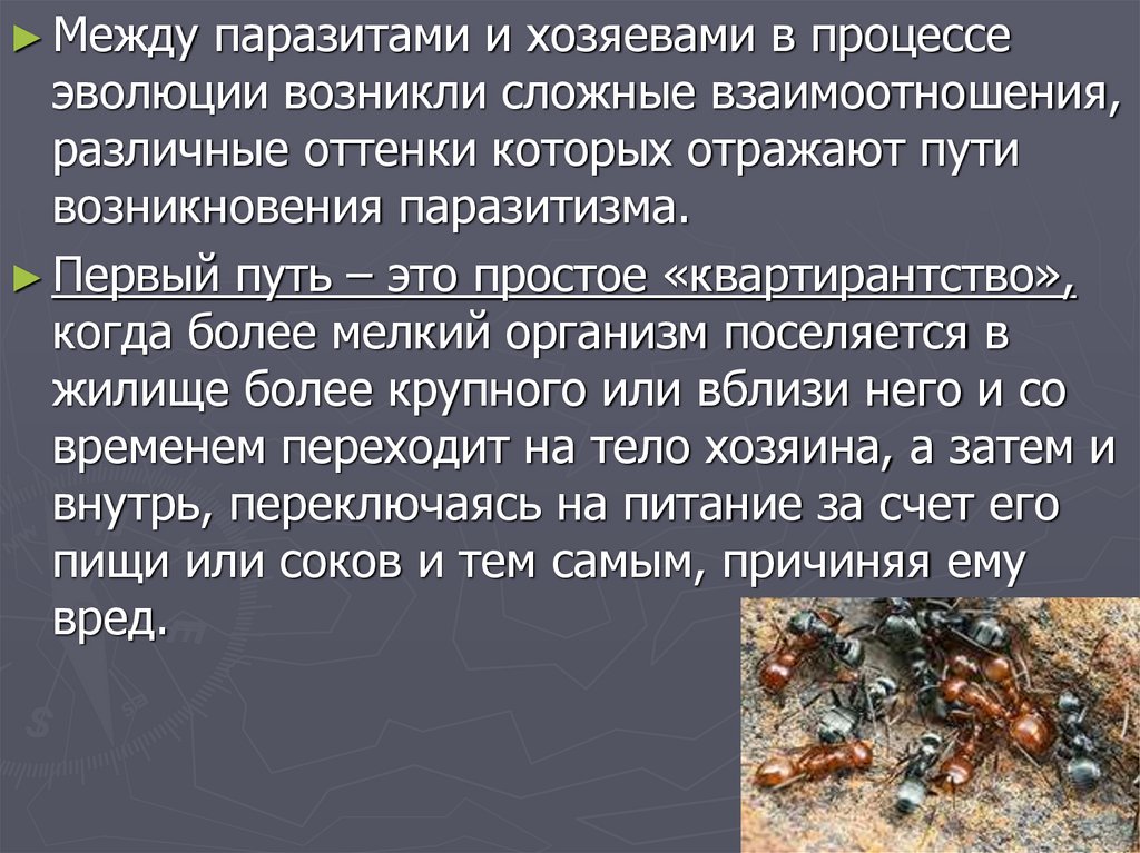 ► Между паразитами и хозяевами в процессеэволюции возникли сложные взаимоотношения,