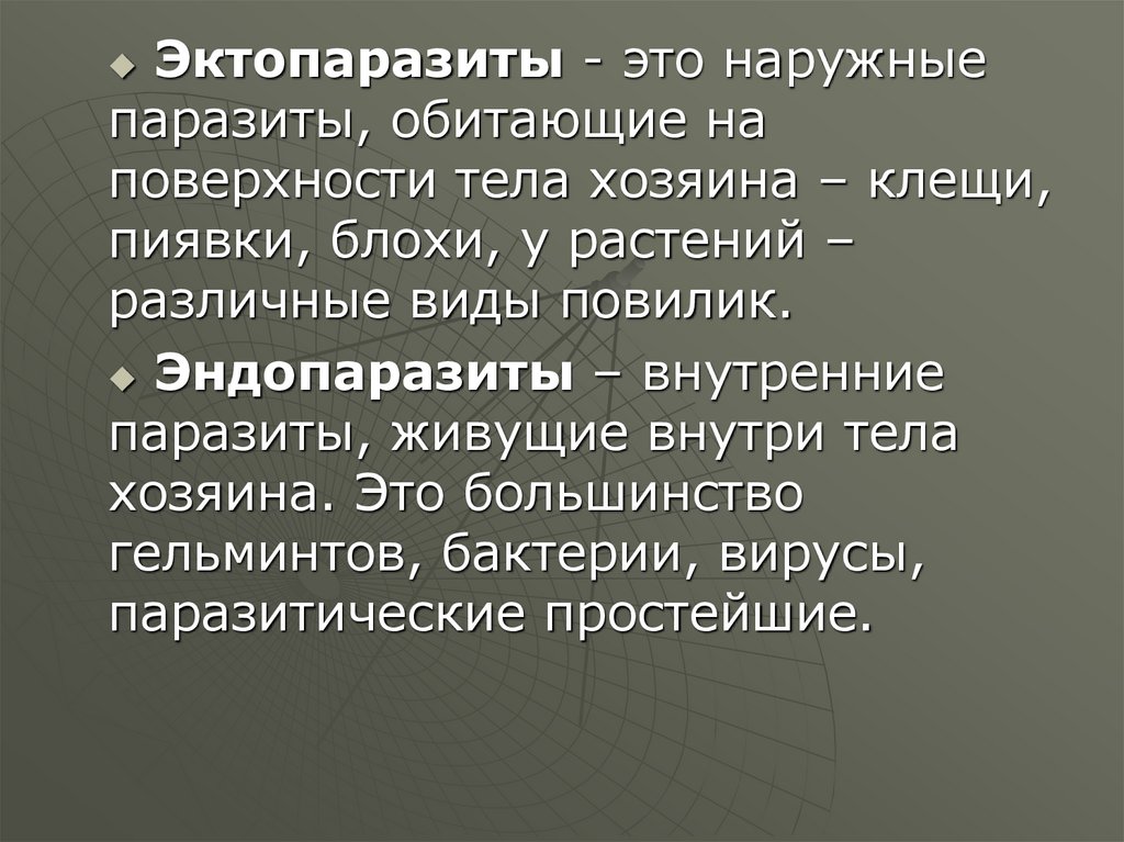 Эктопаразиты - это наружныепаразиты, обитающие на