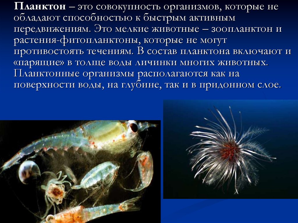 Планктон – это совокупность организмов, которые необладают способностью к быстрым активным