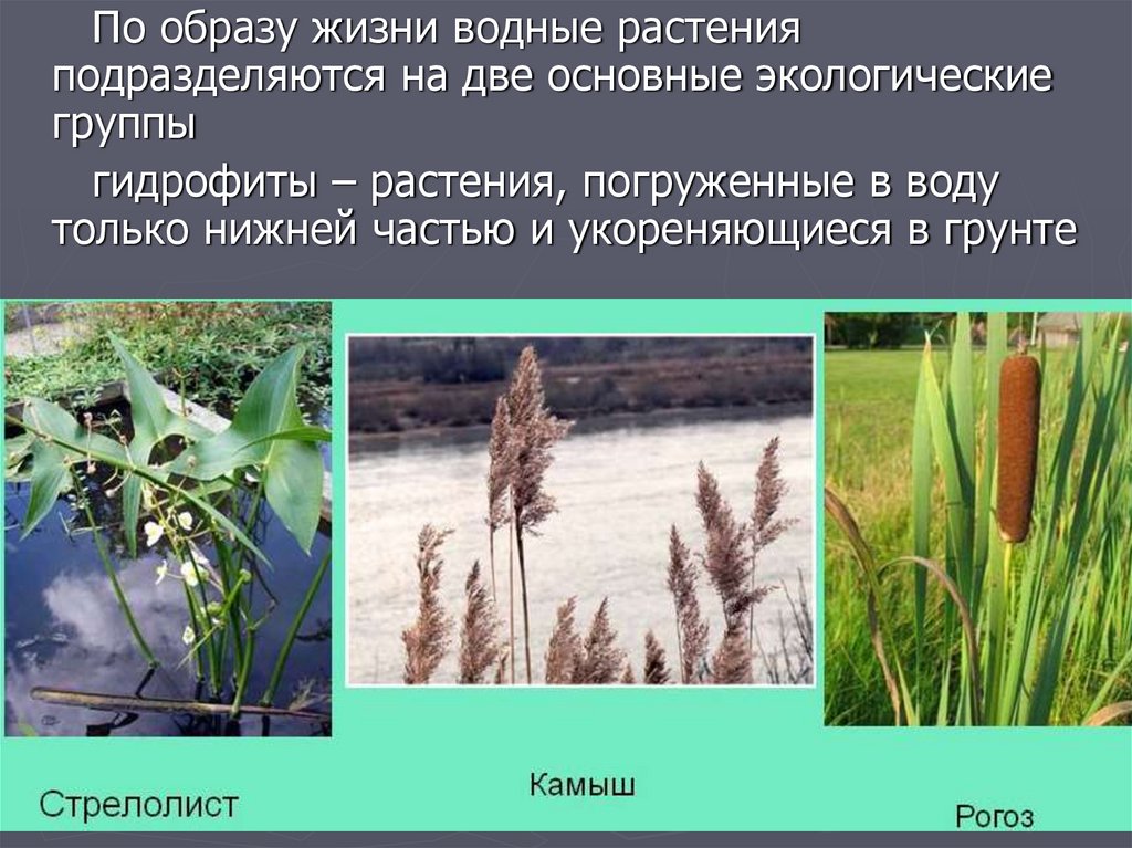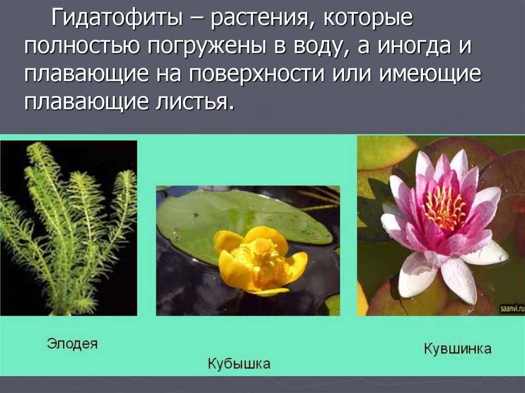 Гидатофиты – растения, которыеполностью погружены в воду, а иногда и