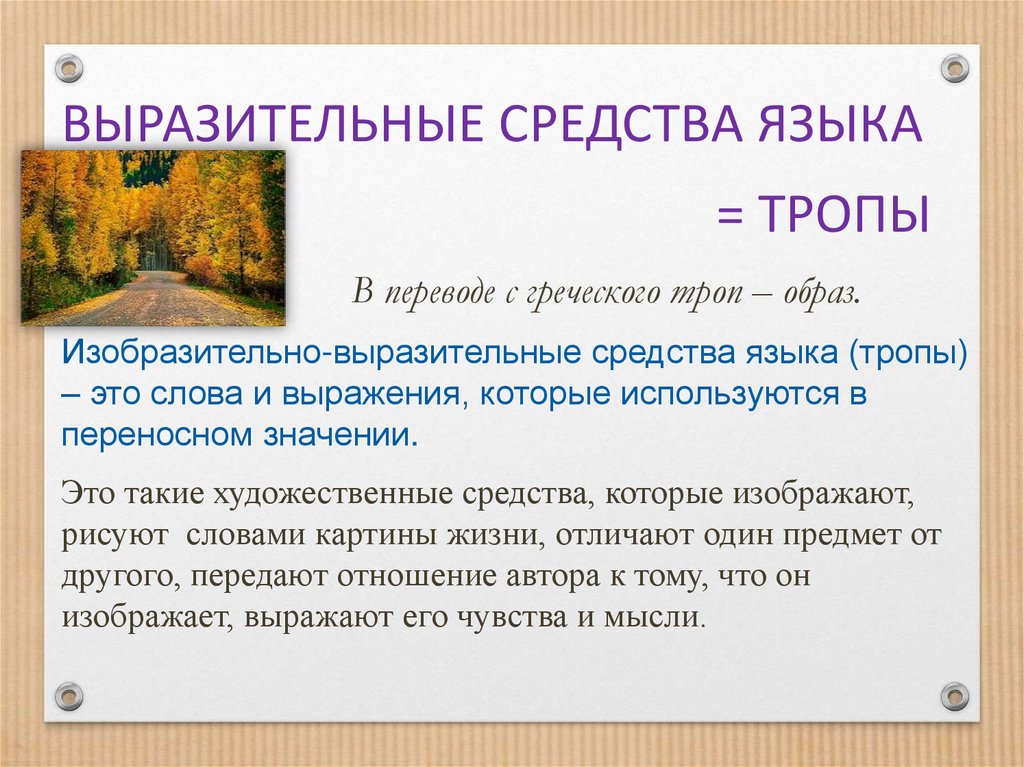 ВЫРАЗИТЕЛЬНЫЕ СРЕДСТВА ЯЗЫКА= ТРОПЫ