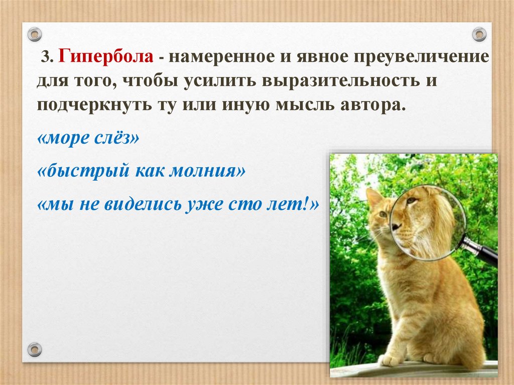 3. Гипербола - намеренное и явное преувеличениедля того, чтобы усилить выразительность и
