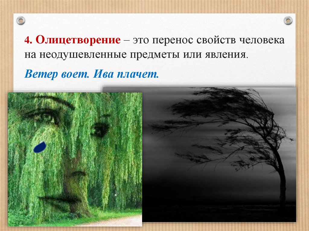 4. Олицетворение – это перенос свойств человекана неодушевленные предметы или явления.