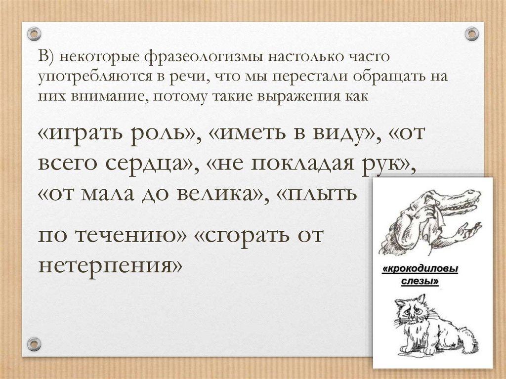 В) некоторые фразеологизмы настолько частоупотребляются в речи, что мы перестали обращать на