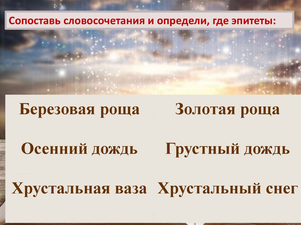 Сопоставь словосочетания и определи, где эпитеты:Березовая роща