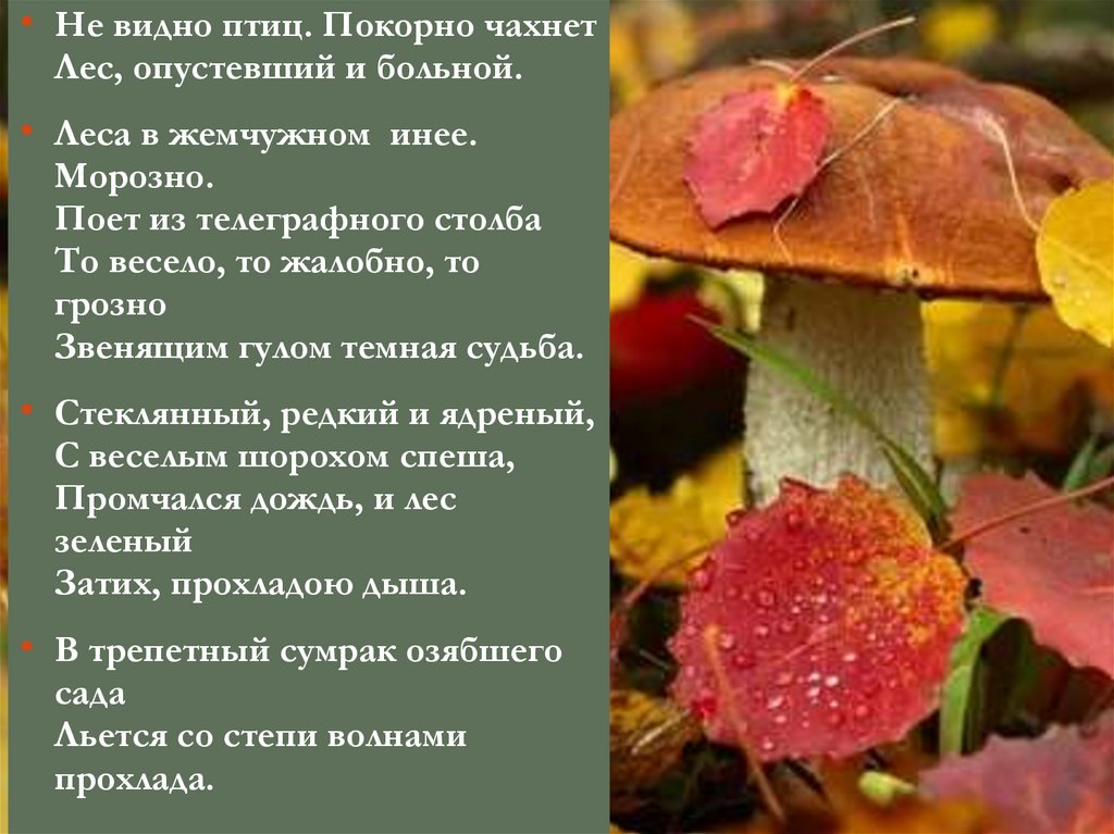 • Не видно птиц. Покорно чахнетЛес, опустевший и больной.