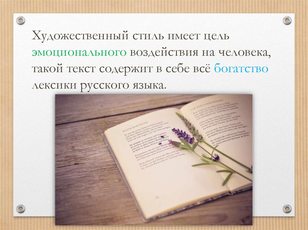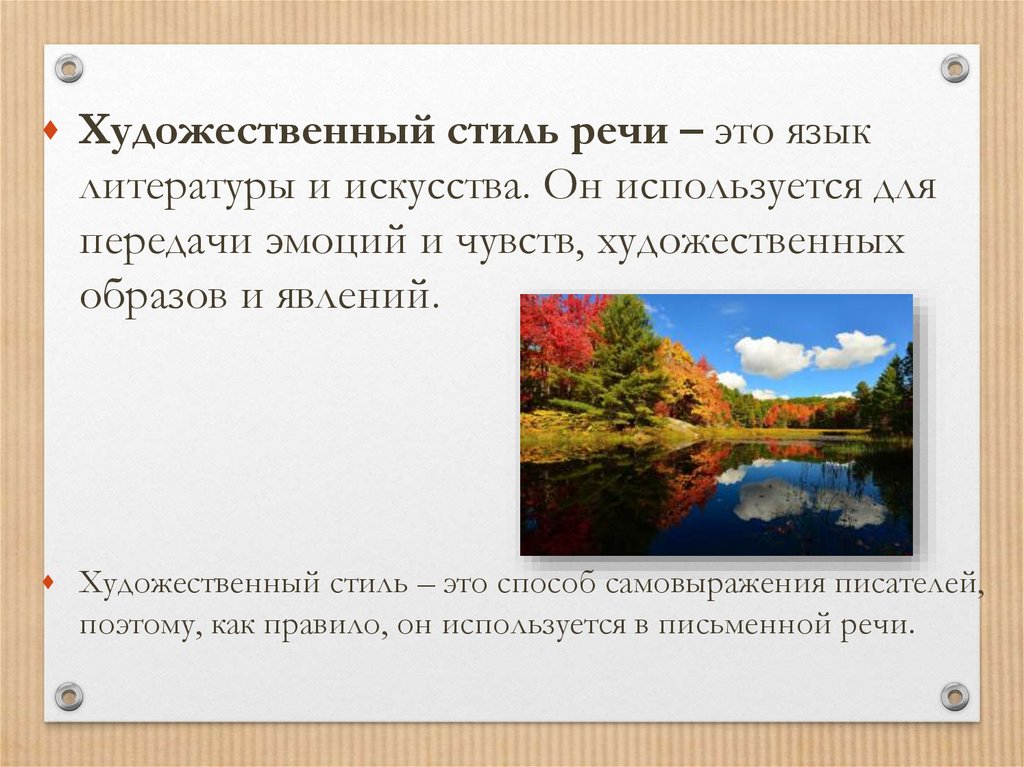 Художественный стиль речи – это языклитературы и искусства. Он используется для