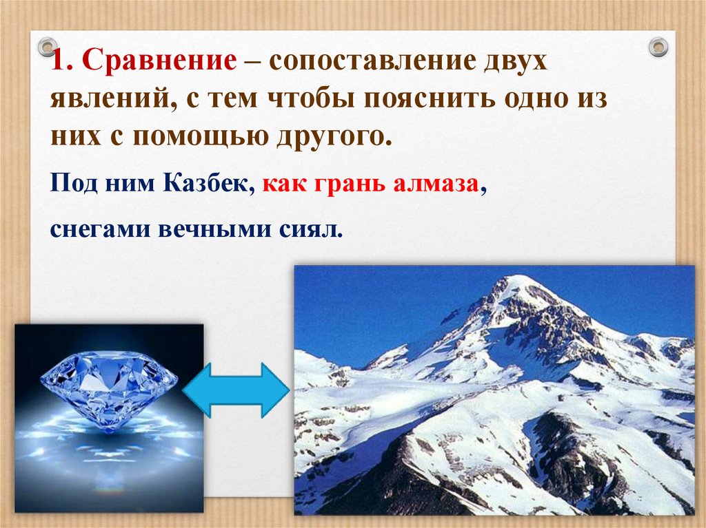 1. Сравнение – сопоставление двухявлений, с тем чтобы пояснить одно из