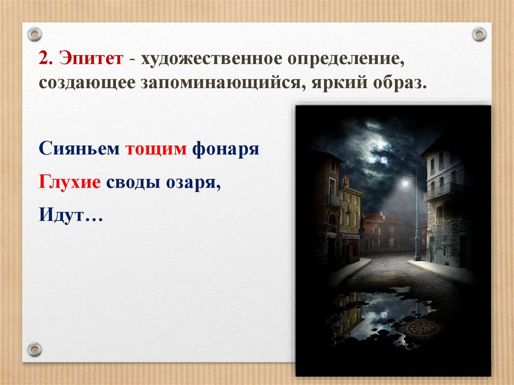 2. Эпитет - художественное определение,создающее запоминающийся, яркий образ.