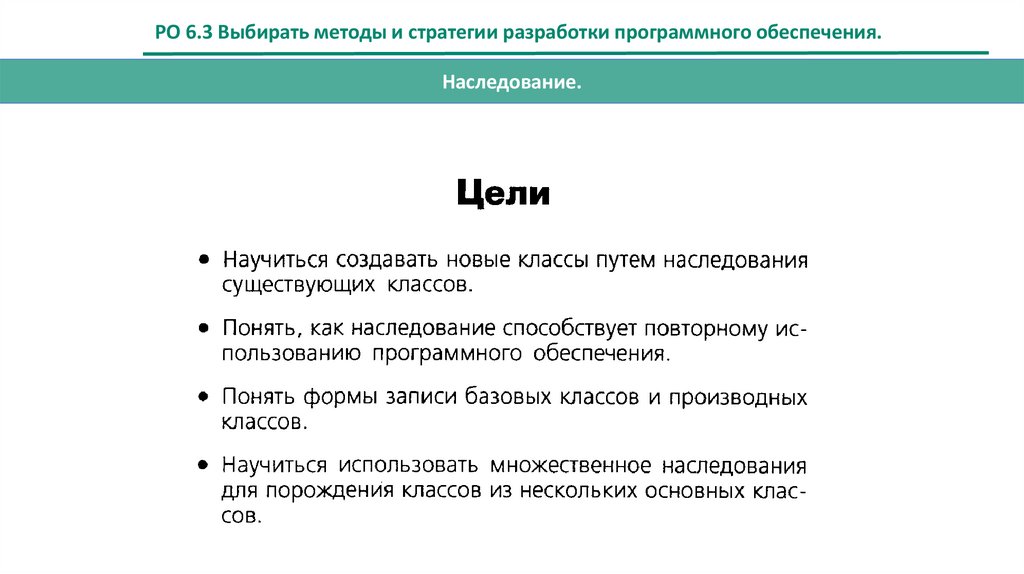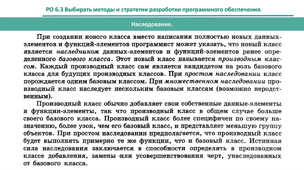 РО 6.3 Выбирать методы и стратегии разработки программного обеспечения.Наследование.