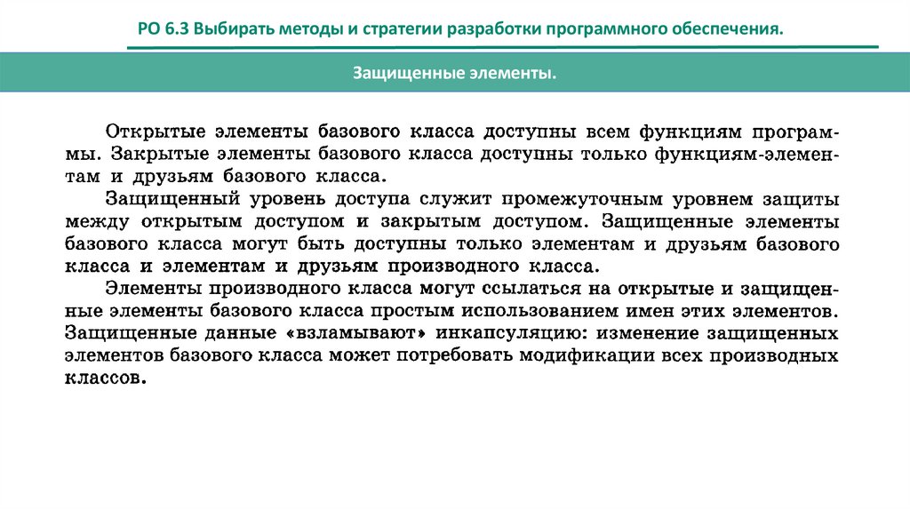 РО 6.3 Выбирать методы и стратегии разработки программного обеспечения.Защищенные элементы.