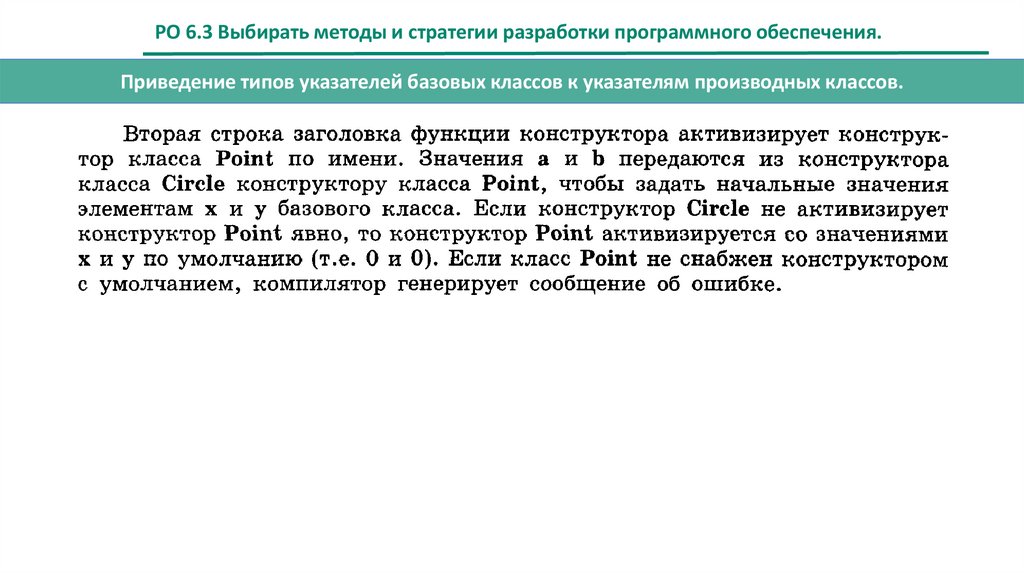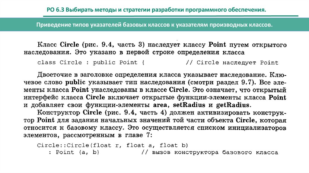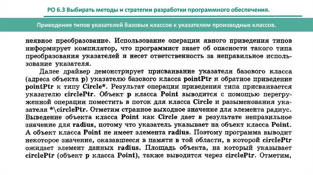 РО 6.3 Выбирать методы и стратегии разработки программного обеспечения.Приведение типов указателей базовых классов к указателям производных классов.