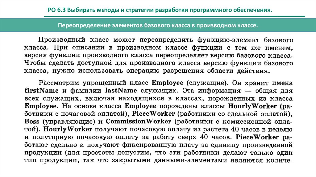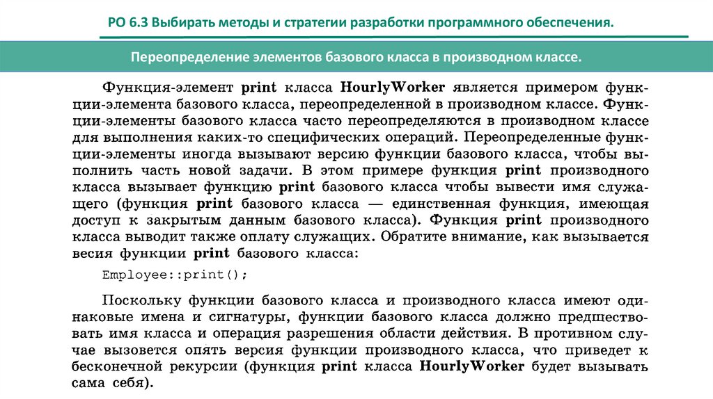 РО 6.3 Выбирать методы и стратегии разработки программного обеспечения.Переопределение элементов базового класса в производном классе.