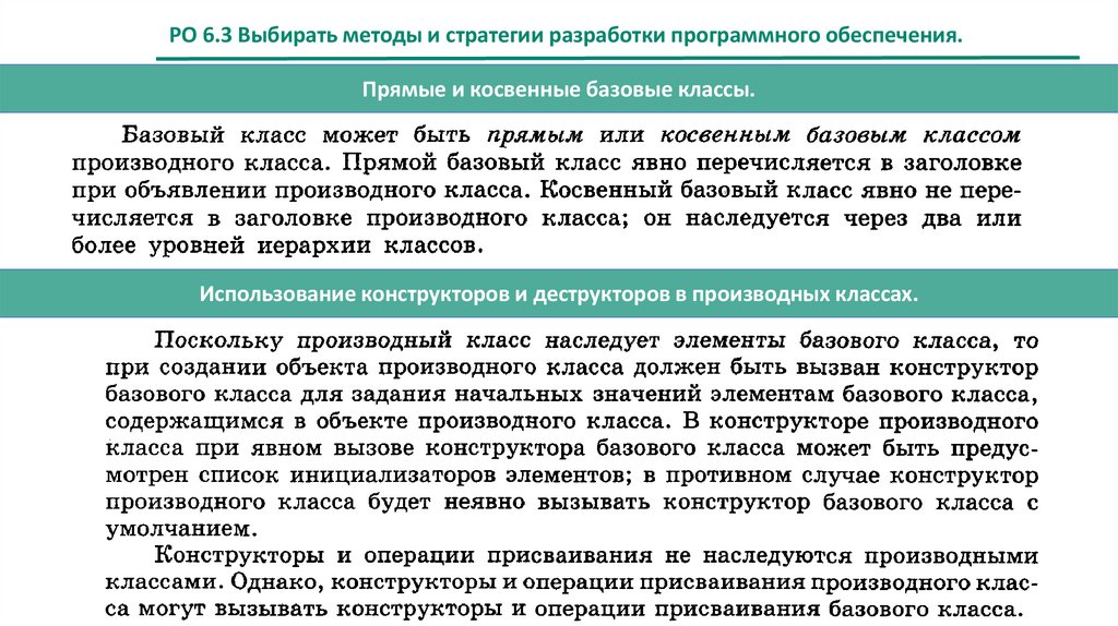 РО 6.3 Выбирать методы и стратегии разработки программного обеспечения.Прямые и косвенные базовые классы.