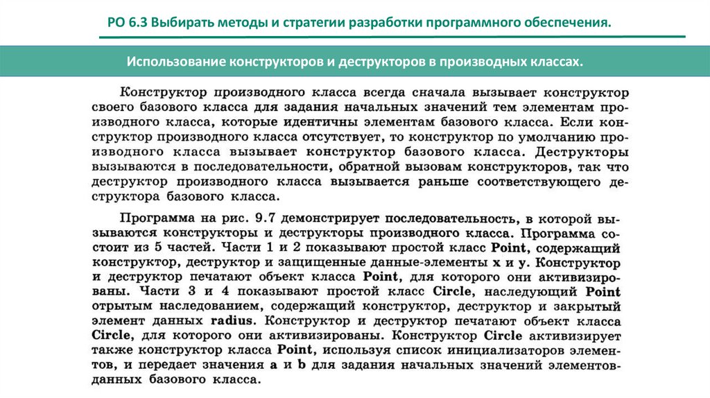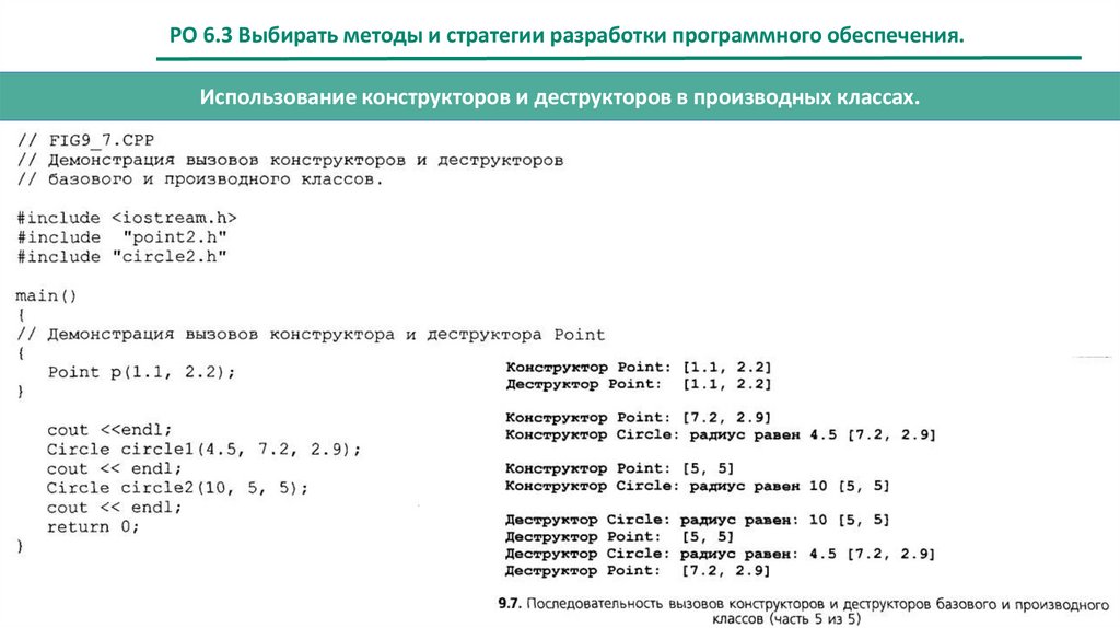 РО 6.3 Выбирать методы и стратегии разработки программного обеспечения.Использование конструкторов и деструкторов в производных классах.