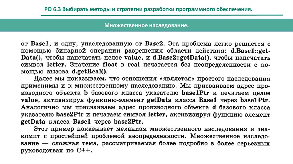 РО 6.3 Выбирать методы и стратегии разработки программного обеспечения.Множественное наследование.