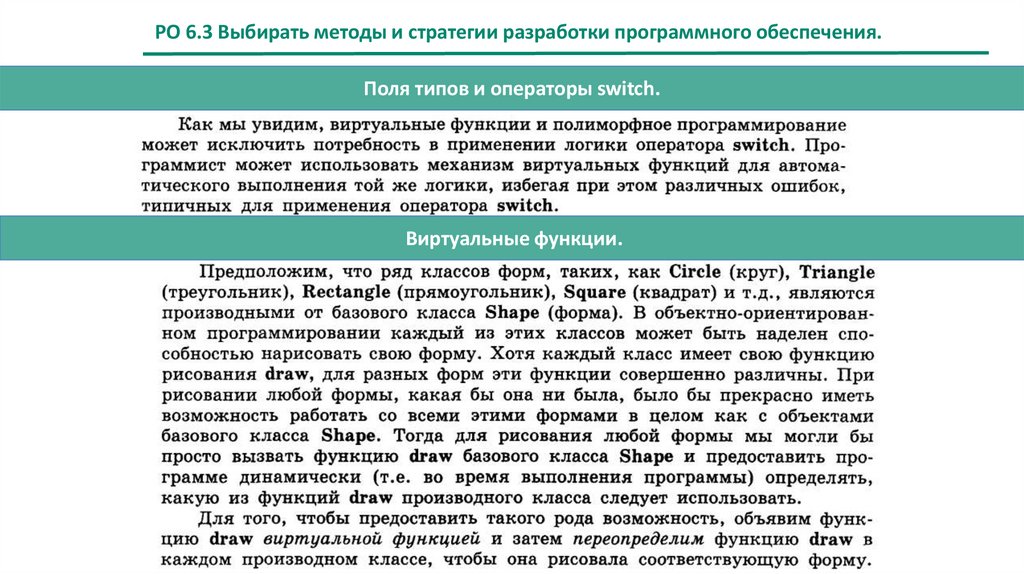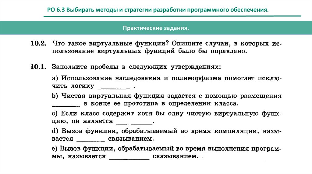 РО 6.3 Выбирать методы и стратегии разработки программного обеспечения.Виртуальные функции.