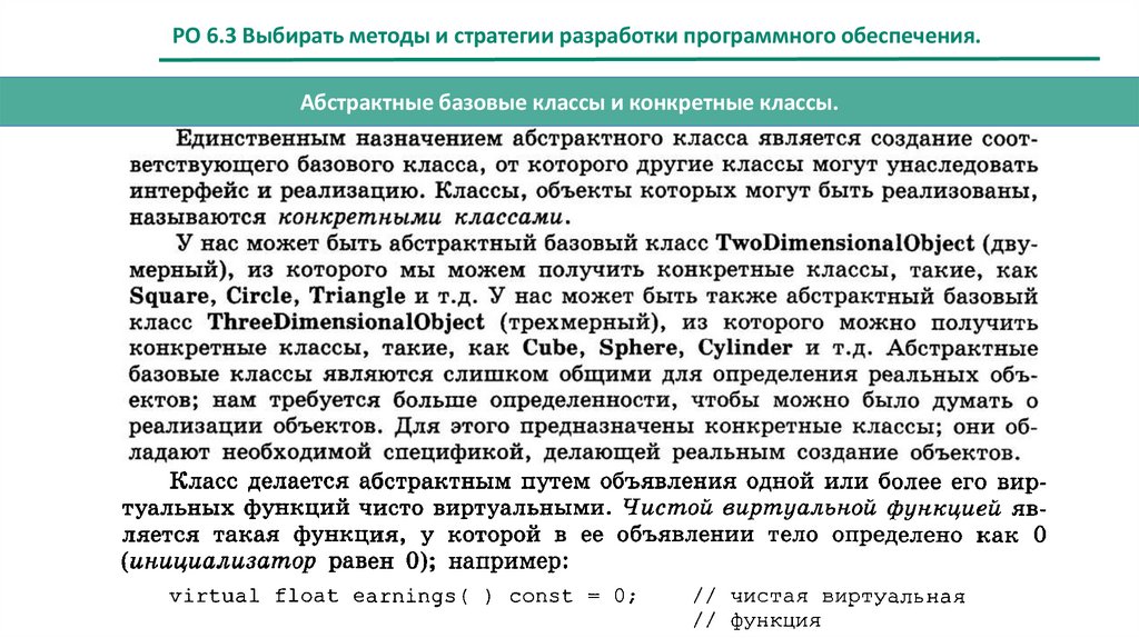 РО 6.3 Выбирать методы и стратегии разработки программного обеспечения.Абстрактные базовые классы и конкретные классы.
