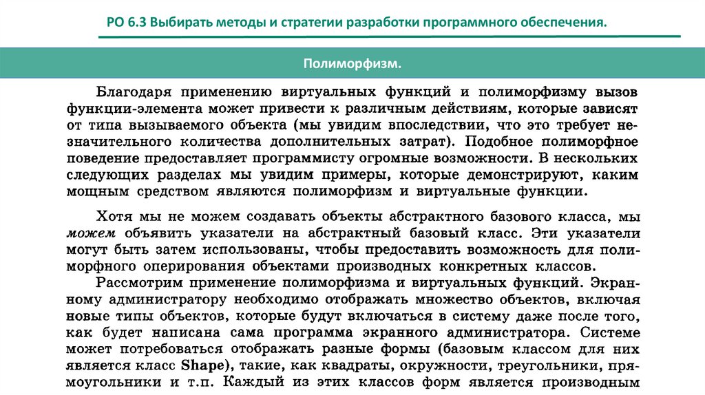 РО 6.3 Выбирать методы и стратегии разработки программного обеспечения.Полиморфизм.