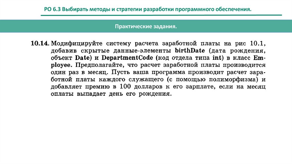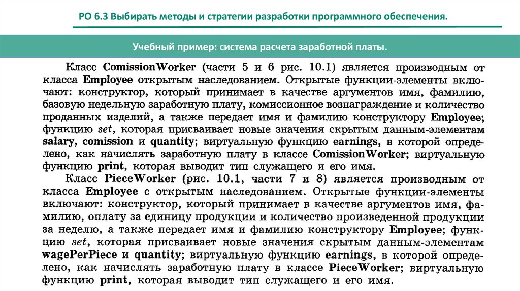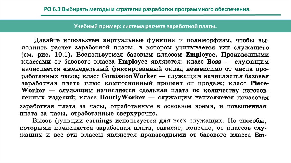 РО 6.3 Выбирать методы и стратегии разработки программного обеспечения.Учебный пример: система расчета заработной платы.