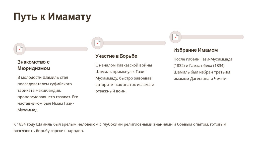К 1834 году Шамиль был зрелым человеком с глубокими религиозными знаниями и боевым опытом, готовым