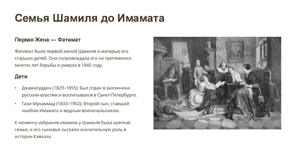 Семья Шамиля до ИмаматаПервая Жена — Фатимат