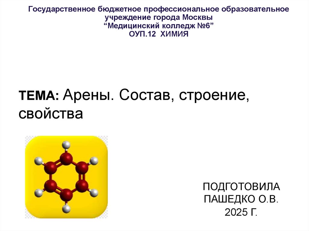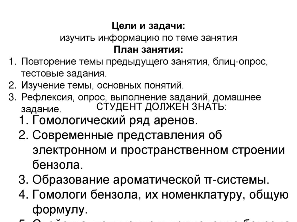 ОСНОВНЫЕ ВОПРОСЫ ТЕМЫ:1. Гомологический ряд аренов.