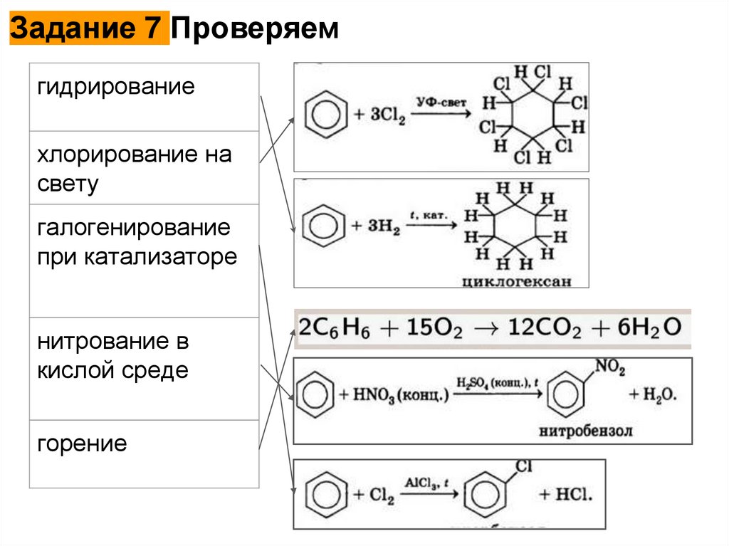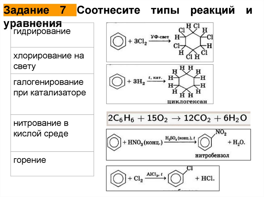 1. Запишите реакцию нитрования бензола в кислой среде.