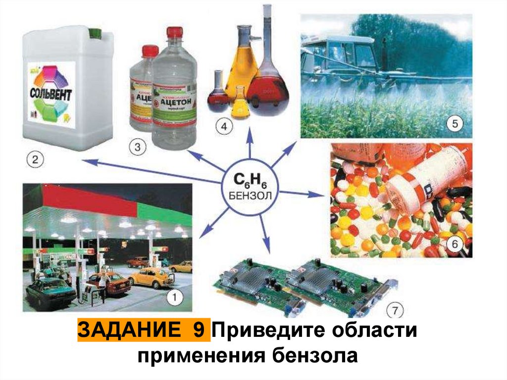 ЗАДАНИЕ 9 Приведите областиприменения бензола