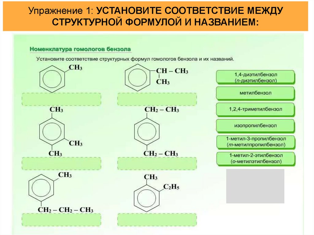 Упражнение 1: УСТАНОВИТЕ СООТВЕТСТВИЕ МЕЖДУСТРУКТУРНОЙ ФОРМУЛОЙ И НАЗВАНИЕМ: