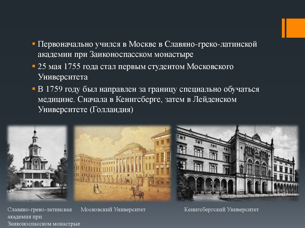 Первоначально учился в Москве в Славяно-греко-латинскойакадемии при Заиконоспасском монастыре