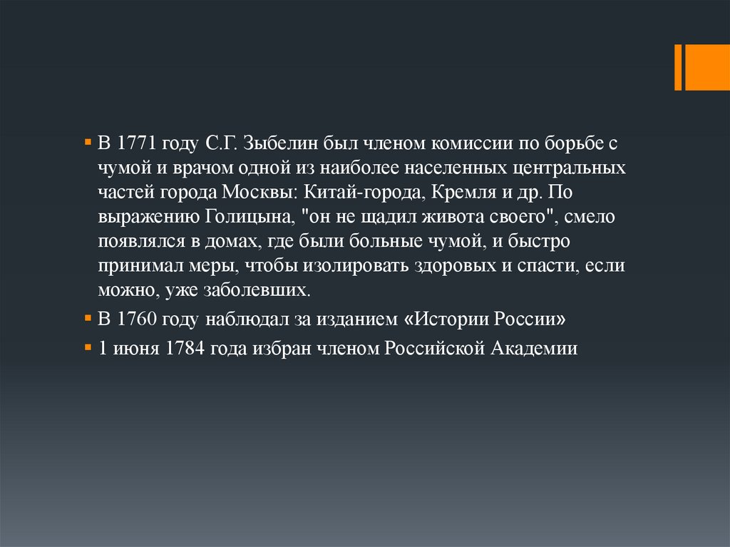 В 1771 году С.Г. Зыбелин был членом комиссии по борьбе счумой и врачом одной из наиболее населенных центральных