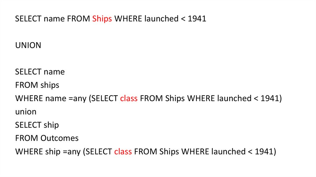 SELECT name FROM Ships WHERE launched < 1941UNION