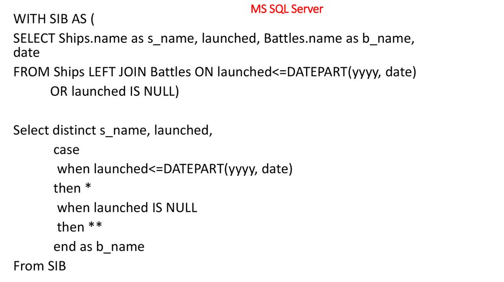 FROM Ships LEFT JOIN Battles ON launched<=DATEPART(yyyy, date)