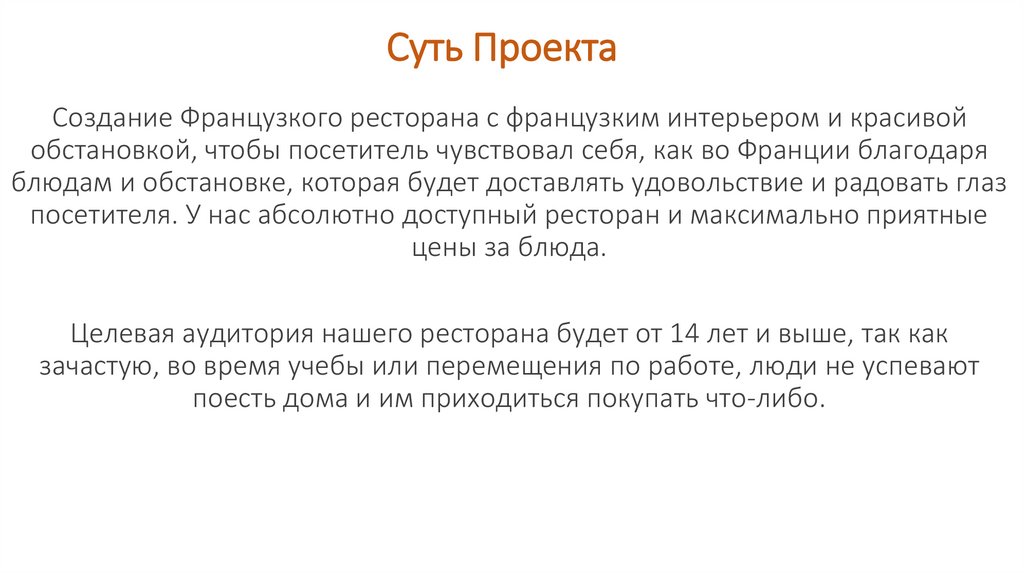Суть ПроектаСоздание Французкого ресторана с французким интерьером и красивой