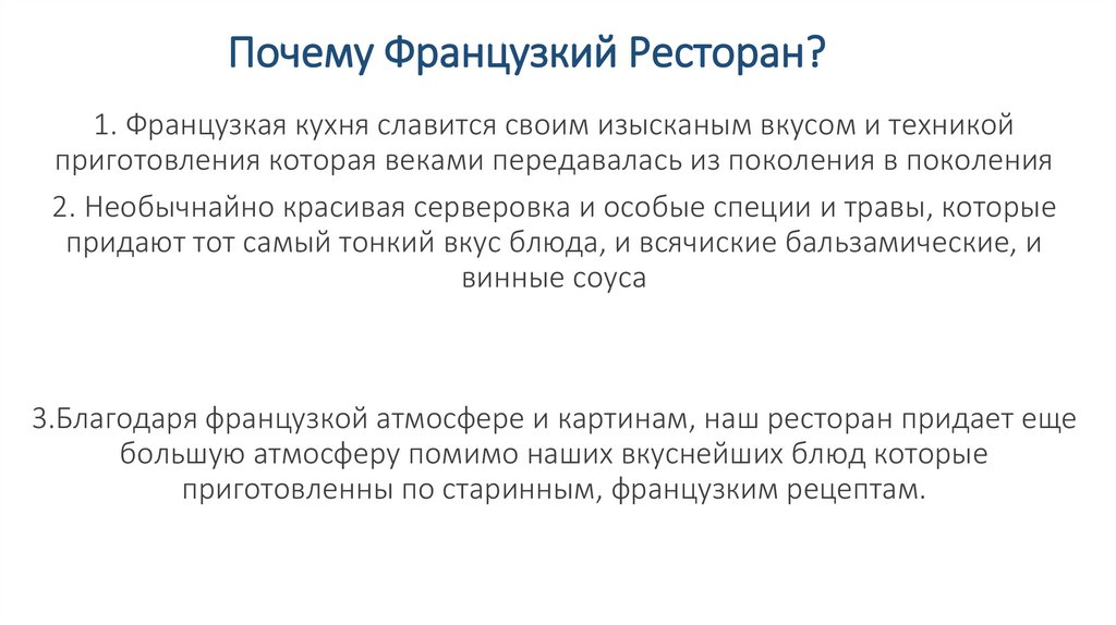 Почему Французкий Ресторан?1. Французкая кухня славится своим изысканым вкусом и техникой
