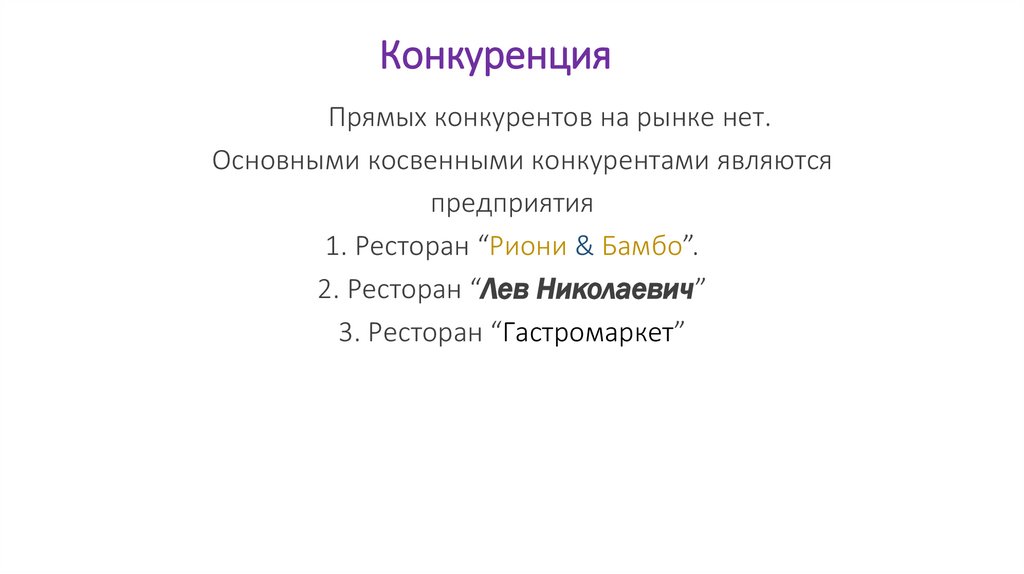 КонкуренцияПрямых конкурентов на рынке нет.