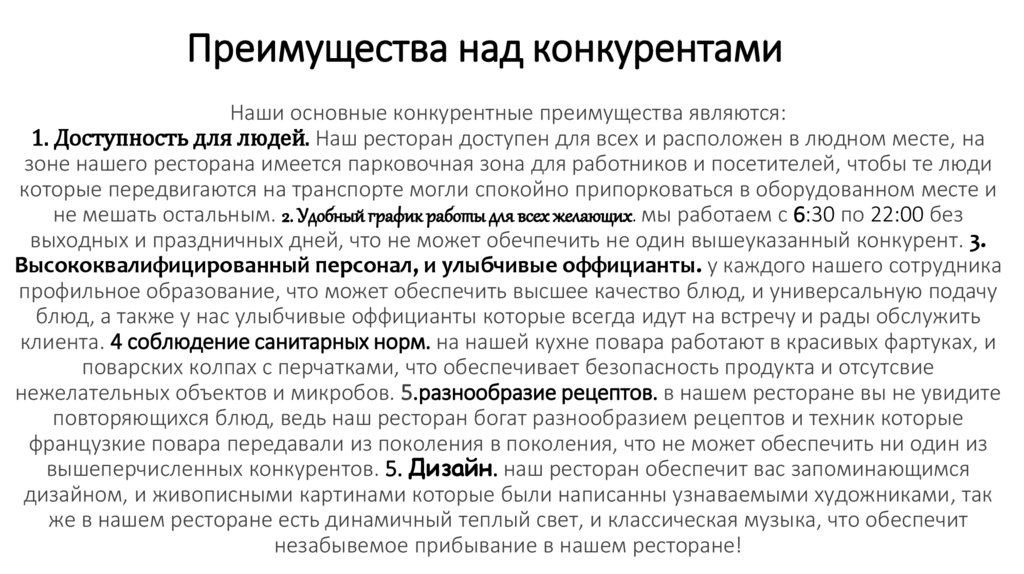 вышеперчисленных конкурентов. 5. Дизайн. наш ресторан обеспечит вас запоминающимся