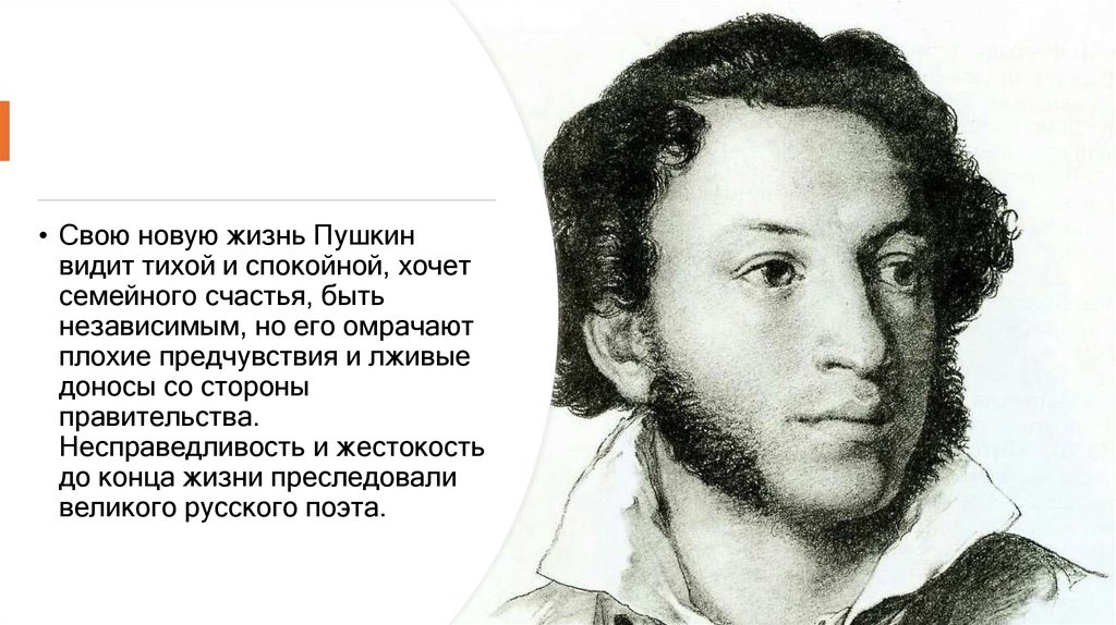 • Свою новую жизнь Пушкинвидит тихой и спокойной, хочет
