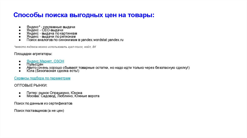 Способы поиска выгодных цен на товары:Яндекс* - рекламные выдачи