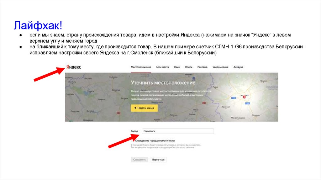 Лайфхак!если мы знаем, страну происхождения товара, идем в настройки Яндекса (нажимаем на значок “Яндекс” в левом
