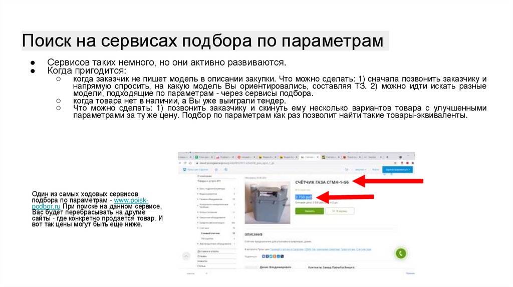 параметрами за ту же цену. Подбор по параметрам как раз позволит найти такие товары-эквиваленты.