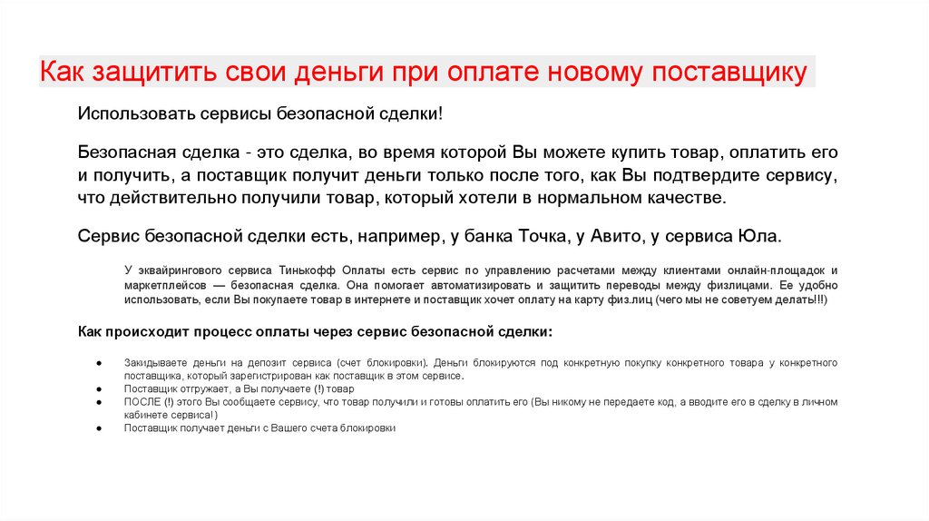 Как защитить свои деньги при оплате новому поставщикуИспользовать сервисы безопасной сделки!
