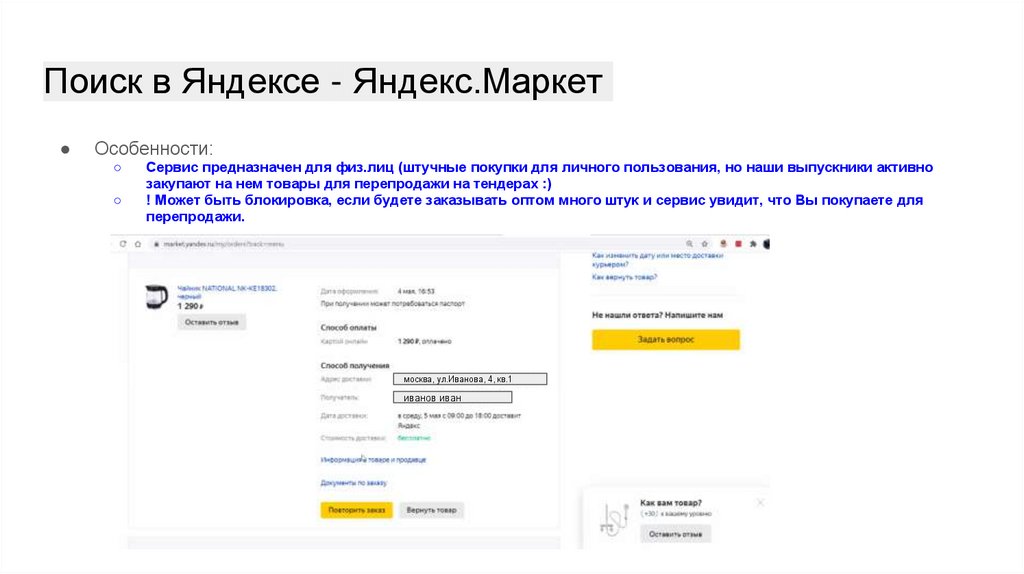 Поиск в Яндексе - Яндекс.МаркетМосква, ул.Иванова, 1, кв.5