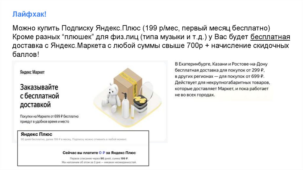Лайфхак!Можно купить Подписку Яндекс.Плюс (199 р/мес, первый месяц бесплатно)