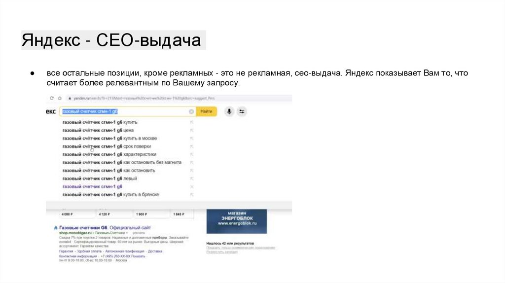 Яндекс - СЕО-выдачавсе остальные позиции, кроме рекламных - это не рекламная, сео-выдача. Яндекс показывает Вам то, что
