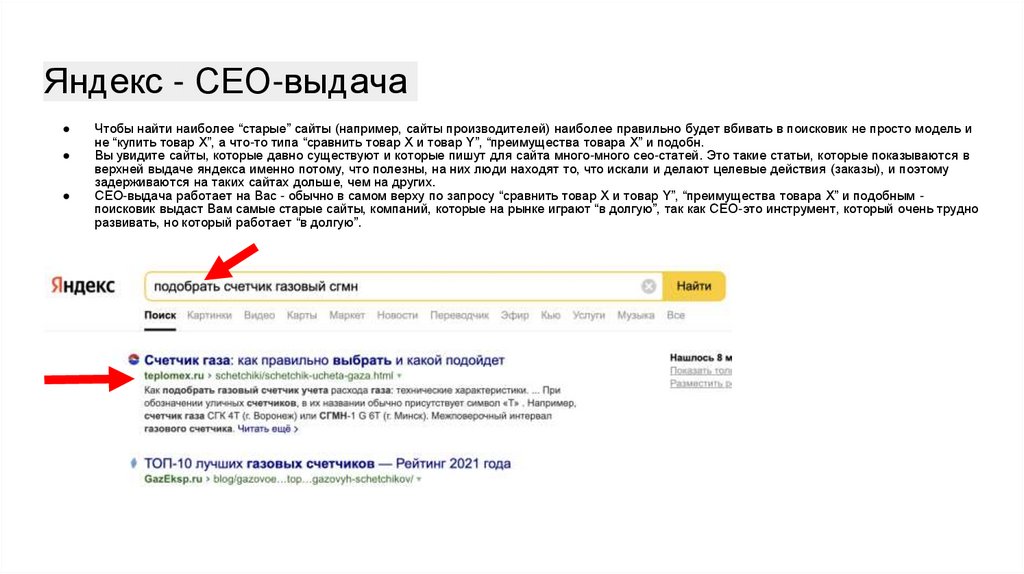 Яндекс - СЕО-выдачаЧтобы найти наиболее “старые” сайты (например, сайты производителей) наиболее правильно будет вбивать в поисковик не просто модель и